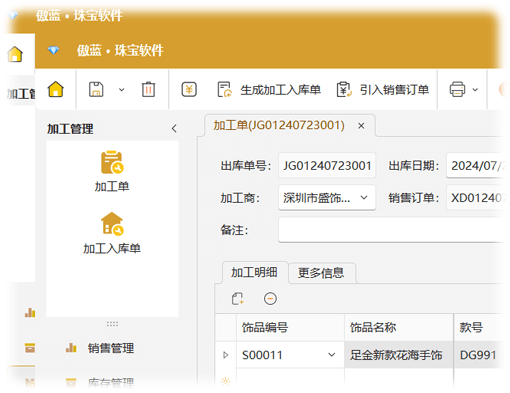 較重要的是飾品管理軟件能夠清晰準確地管理到原料的出庫、成品的入庫以及加工過程中產生的成本、工費等,同時可以管理加工廠以及加工時間等重要數據。