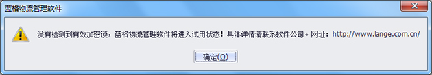 在試用版狀態下會彈出一個沒有檢測到加密鎖的提示,購買正式版后,傲藍軟件公司會把一個加密鎖寄送給您,插入加密鎖到電腦的USB接口后再運行傲藍物流軟件就不會再提示處于試用狀態了。