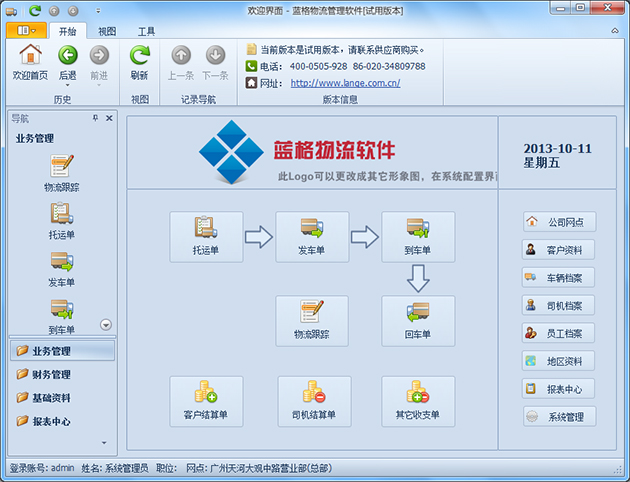 登錄成功后會自動進入傲藍物流軟件的歡迎界面,然后就可以開始使用傲藍物流軟件了。